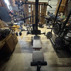 WEIDER Olympic Bench + Rack + 300 lb Set (255 lb plates + 45 lb bar) + Attachments + Weight Tree$450Snohomish, WA