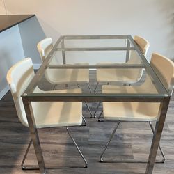 Modern dining table with glass top and 4 leather chairs$200Seattle, WA