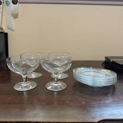 Set of 4 Vintage Etched Glasses with Matching Plates Dessert Cups$10Tacoma, WA