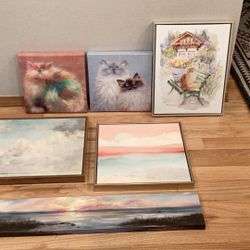 ๐ผ๏ธ Set of 6 Wall Art Pieces โ Cats, Landscapes & Cottage โ Great Condition! ๐ผ๏ธ$20Gig Harbor, WA