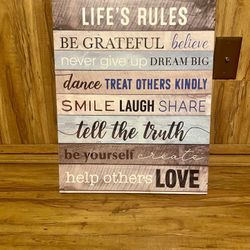 “Life’s Rules Inspirational Wall Sign – Wood Plank Style Motivational Quote Décor”$20Lakewood, WA