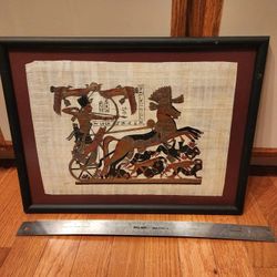 Framed Egyptian Work of Art, Hand Painted on Parchment, Tutankhamun in Battle, XVIII Dynasty 16" x 12.5"$20Puyallup, WA