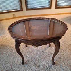 1930s Style Coffee Table with Glass Top & Inlaid Rose Design$275Edgewood, WA
