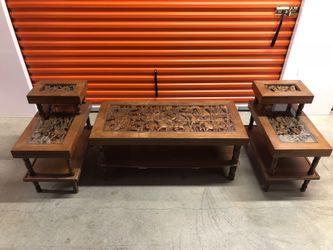 Hand Carved Wood Coffee Table Set$800Puyallup, WA