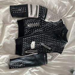 Zara Man Mens Jacket Black/ White Leather Studded Motorcycle Biker Bomber XL$300Seattle, WA
