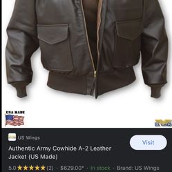 Authentic US Army Leather Jacket WWll Style Size Medium $250Roy, WA
