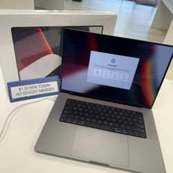 Apple MacBook Pro 16in M1 Pro Chip 2021 (10 CPU - 16 GPU / 16GB / 512GB)- $1 Down Today - NO CREDIT Needed$2,399Renton, WA