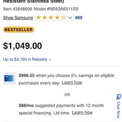 Brand New Samsung 1.9 Cuft Microwave $300Tacoma, WA