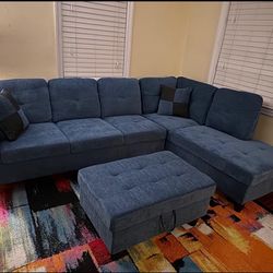 Blue Sectional Couch And Ottoman$650Kent, WA