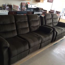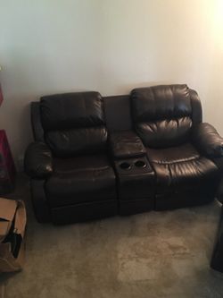 True recliner couches with a centerpiece cup holders and storage box$900University Place, WA