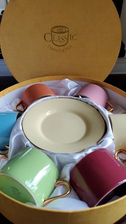 6 colorful cups with saucers sets New$25Tacoma, WA