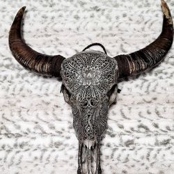 Carved Buffalo Skull Lotus Grey Medium Horn$250Liberty Lake, WA