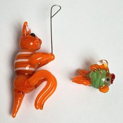 Vintage Lampwork Fishing Cat and Fish $8Spokane, WA