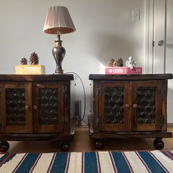 Oak end tables with Bottle glass cabinets$175Spokane, WA