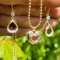 Women’s Jewelry Set 14k Gold Plated Earrings & Necklace Garnet & CZ Message In A Bottle$185Spokane, WA