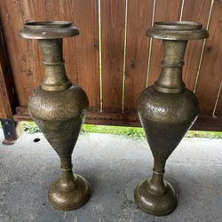 Vintage Pair of Hand-etched Brass Floor Vase from India$100Sedro-woolley, WA