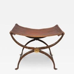 Spanish Wrought Iron Stool Antique Folding Scissor Leg Base Horse Hide Stitched Leather$450Marysville, WA
