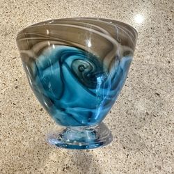 Dockyard Glassworks Bermuda Hand Blown Art Glass Bowl Blue Swirl Pattern$30Edmonds, WA
