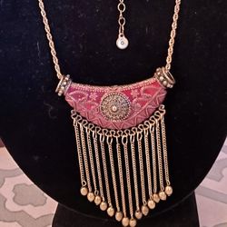 Maroon Dangle Charming Charlie Necklace With A Pair Of Hoop Earrings $30Mount Vernon, WA