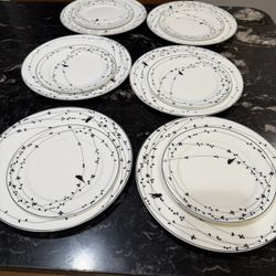 6 Dinnerplate And 6 Salad Plates Of Ciroa Oiseau Fine Bone China White & Silver Birds $110Federal Way, WA