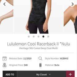 Lululemon Cool Racerback II *Nulu - Heritage 365 Camo Deep Coal Multi, size 8(?)$12Renton, WA