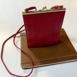 Vintage Bechamel Red Leather Kisslock Gold tone hardware Rectangle Crossbody Bag$25Covington, WA