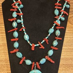 Gorgeous turquoise silver necklace red coral vintage to now lot of stones$20Covington, WA
