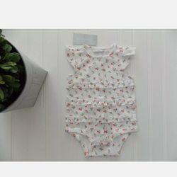 NWT Baby Girls 3-6 Months White & Red Tiny Floral Ruffle Bodysuit Romper 3-6 Month Onesie $8Tacoma, WA