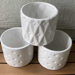 Set Of 3 Ceramic Pots 8” And 7” Yellow And White Planters$30Seattle, WA