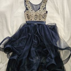 Elegant Navy Blue And Gold Lace Bead Formal Prom Dress$40Graham, WA