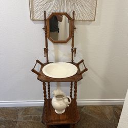 Vintage Beautiful Solid Oak Wash Stand With Mirror, Pitcher And Bowl. $125Tacoma, WA