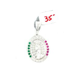 925 Sterling Silver San Judas Pendant With Colored Green And Red Stones 4.97grams $25Federal Way, WA