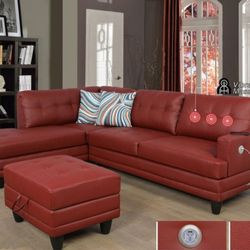 New Sectional With Storage Ottoman On Red Microfiber $700Kent, WA