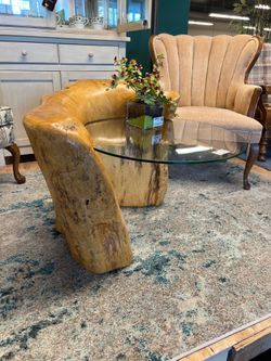 Rustic Live Edge Wood Coffee Table with Round Glass Top$900Renton, WA