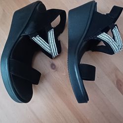 New! Skecher Wedge Rinestone Embellished Sandals Black Women's 9$25Tacoma, WA