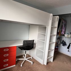 White IKEA Loft Bed, Desk and Storage Twin$300Ruston, WA