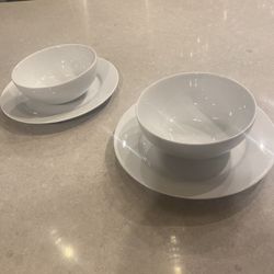 Crate & Barrel 4 Piece Set Of 2 White Plates 8.25” In Diameter and 2 Bowls 5.5”$15Bellevue, WA