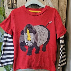 Mini Boden Rhino Applique Long Sleeve Shirt