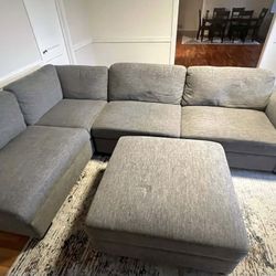 Gray Linen Sectional Couch And Ottoman $700Renton, WA