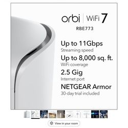 NETGEAR Orbi 773 Series WiFi 7 Mesh (RBE773) - Router + 2 Satellite Extender$450Bothell, WA