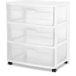 Sterilite Wide 3-Drawer Storage Cart, Plastic Rolling Cart with Wheels to Organize Clothes in Bedroom, Closet, White with Clear Drawer$45Kirkland, WA