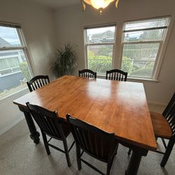 Dining Room Table w/ Built In Leaf + 5 Chairs & Bench$1,000Woodinville, WA