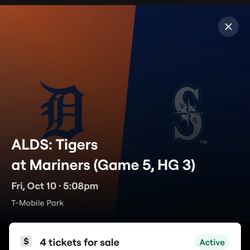 4 Tickets Mariners Vs. Tigers Game 5$1,500Seattle, WA