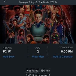 2 Stranger Things Finale Tickets $60Renton, WA