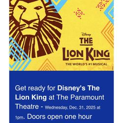 1:00 New Year’s Eve, Dec 31 lion king tickets, Paramount$75Graham, WA
