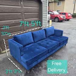 Free Delivery | Royal Blue Velvet, Mid-Century Modern Tufted, 3 Seat Sofa$400Federal Way, WA