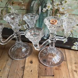 Pair Of Beautiful Heavy Glass Crystal Candelabra Candle Holders$25Federal Way, WA