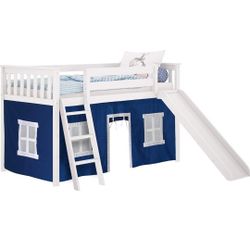 Kids Twin Size Loft Bunk Bed with Slide and Underbed Curtain $140Renton, WA
