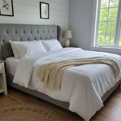 Upholstered Bed FRAME KING Bed Frame GRAY BED Grey BED Frame FABRIC Bed FRAME $495Troutdale, OR