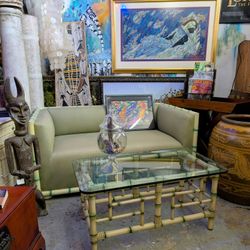 Rattan Green Love Seat And Glass Topped Coffee Table At BoneJax $1,500Portland, OR